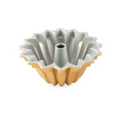 De eerste en bekendste bakvorm is de ‘Original Bundt’. Deze kwam op de markt in 1950 en werd beroemd toen ze hem gebruikte in een bakwedstrijd. Uiteraard won deze cake de eerste prijs en de rest is, zoals ze zeggen, geschiedenis. De bundt, oftewel tulband, is zo geliefd bij bakliefhebbers dat alleen de ‘Original Bundt’ al bij circa 75 miljoen mensen in de kast staat.